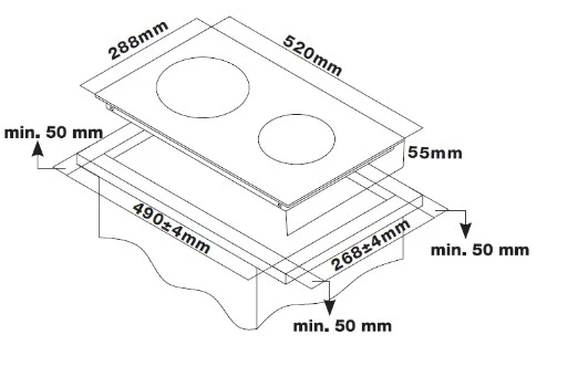 | Cooking zones: | 1x Ø200mm Zone – 1.8kW 1x Ø165mm Zone – 1.2kW |