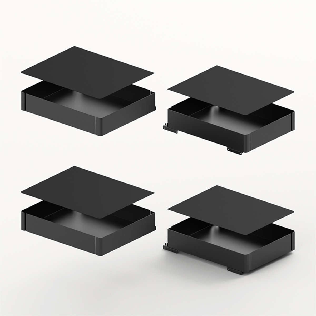- 2 clip on pull-out shelves, front (powder-coated steel)